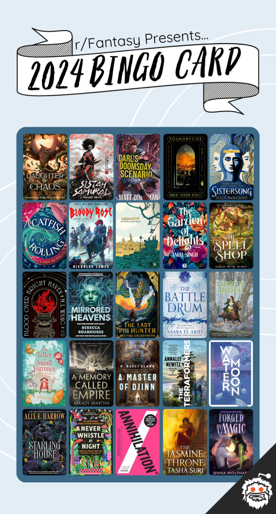 In my 2025 Reading Plans post I shared about some of the goals I had for this year, one of which was r/Fantasy Book Bingo. This is a challenge that happens every year over on Reddit, specifically the Fantasy subreddit which is dedicated to speculative fiction of all kinds and formats. I’ve been participating in this challenge since 2018 though for many years it was as a lurker, more recently as a poster and now as a moderator of the forum myself!