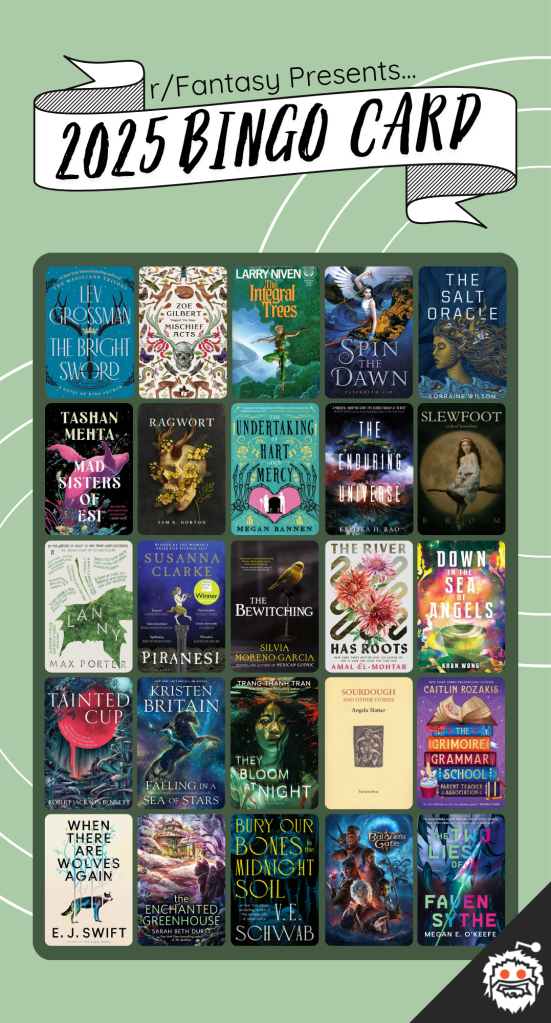 r/Fantasy Book Bingo 2025 is done! I finished my card with 3 weeks to spare, which is good going for me!